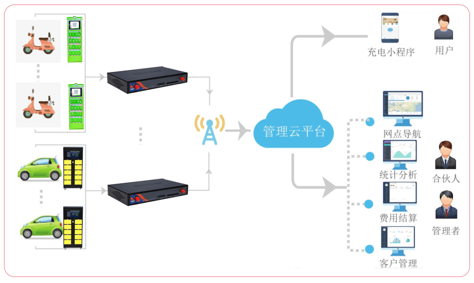 將所有智能換電柜終端統(tǒng)一聯(lián)網(wǎng),集中管理;