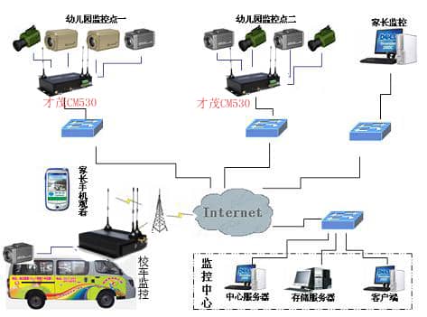 幼兒園校車安裝無線視頻服務(wù)器,實(shí)時的將前端視頻傳輸?shù)胶蠖吮O(jiān)控中心,同時可以輕松實(shí)現(xiàn)隨時隨地的遠(yuǎn)程視頻監(jiān)控,視頻資料可以隨時進(jìn)行錄象,方便檢索查閱。