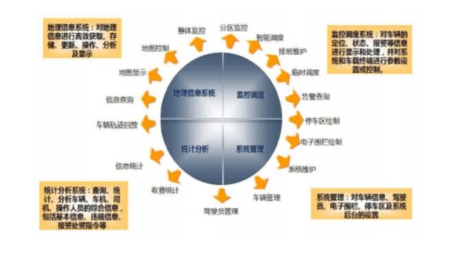 應(yīng)用上述技術(shù),機場車輛安全管控與調(diào)度系統(tǒng)主要包括智能監(jiān)控、智能調(diào)度、違章管理、信息查詢、系統(tǒng)管理和系統(tǒng)設(shè)定子模塊構(gòu)成。