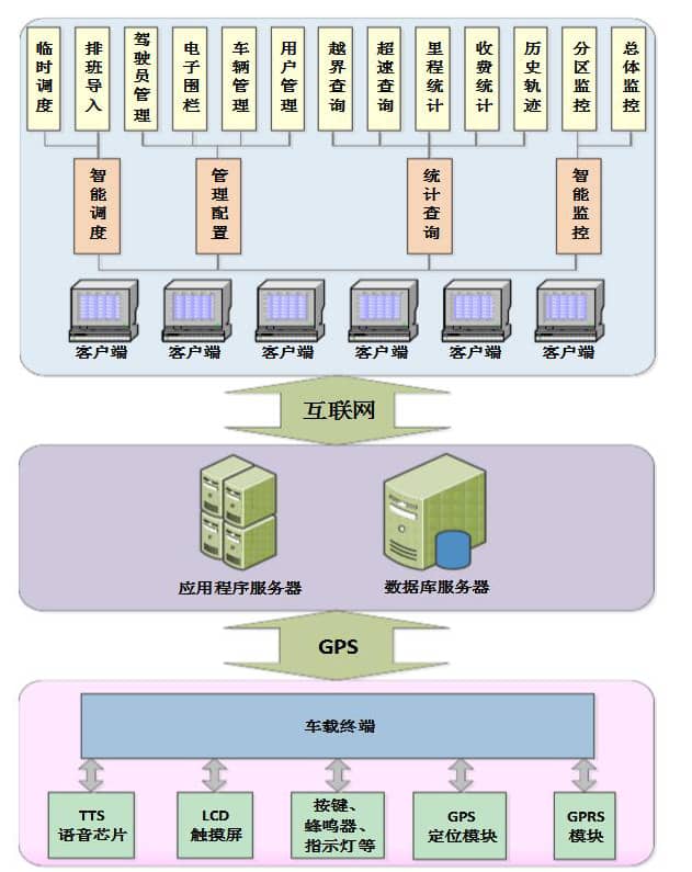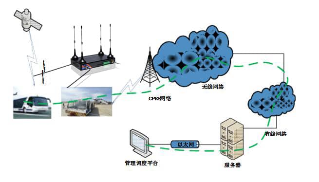 車載終端(工業(yè)級路由器)設(shè)備是該系統(tǒng)的核心部件之一,車輛信息的獲取與傳遞都由車載終端實現(xiàn),車載終端主要由GPS定位模塊、GPRS通信模塊、LCD觸摸屏、語音芯片、按鍵、指示燈、蜂鳴器等。管理調(diào)度平臺實現(xiàn)六大功能,詳細描述見第五章。