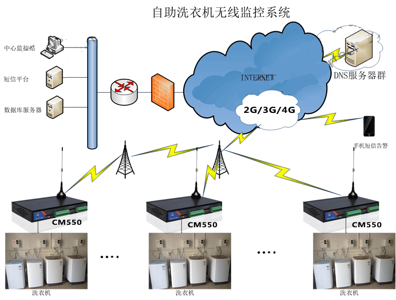 廈門才茂通信CM550在系統(tǒng)中主要是實現(xiàn)各個分布式洗衣站點的無線聯(lián)網(wǎng)監(jiān)控,實現(xiàn)酒店、學(xué)校、公寓或是自主連鎖洗衣店站點的無線遠(yuǎn)程集中聯(lián)網(wǎng)與后臺的統(tǒng)一監(jiān)控。保證自助洗衣機各站點的統(tǒng)一運營管理。