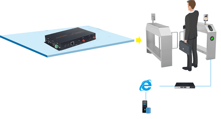 針對要求通行效率且無需做人員登記的場景,使用人臉識別溫感一體機或人臉識別溫感一體機加通道閘機的部署方式,只做溫度檢測,大大加快了人員通行減緩擁堵。在閘機通道處部署人臉識別溫感一體機,通行人員使用閘機上的身份證讀取設備讀取身份信息進行人證比對登記。